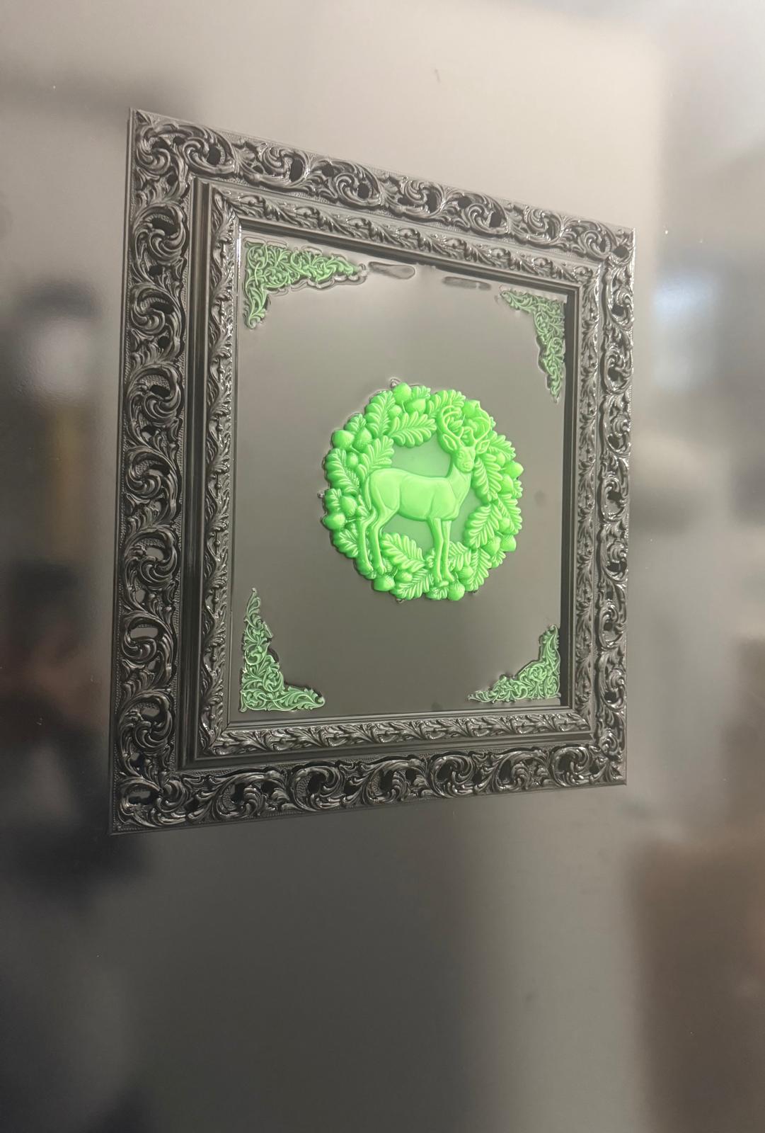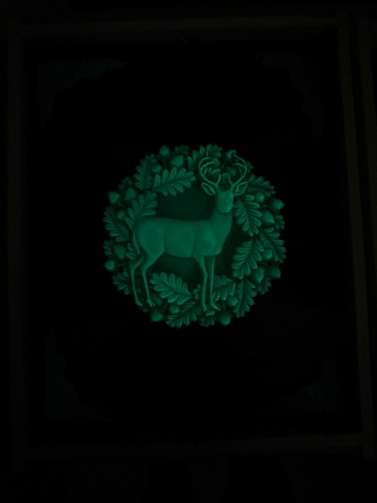 Quadro "Luminescenza Barocca" – Cervo in Resina Fluorescente