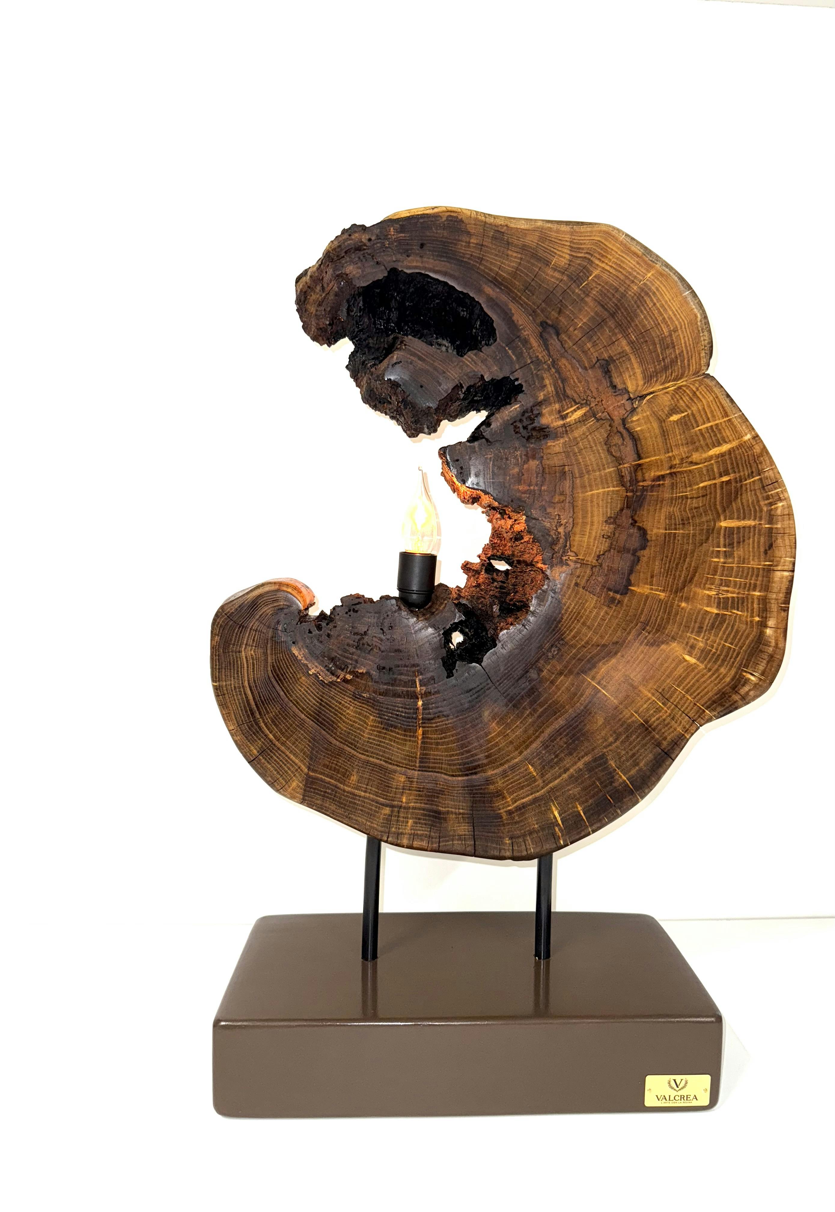 Lampada in radica di gelso con basamento realizzato artigianalmente di colore "noce antico".