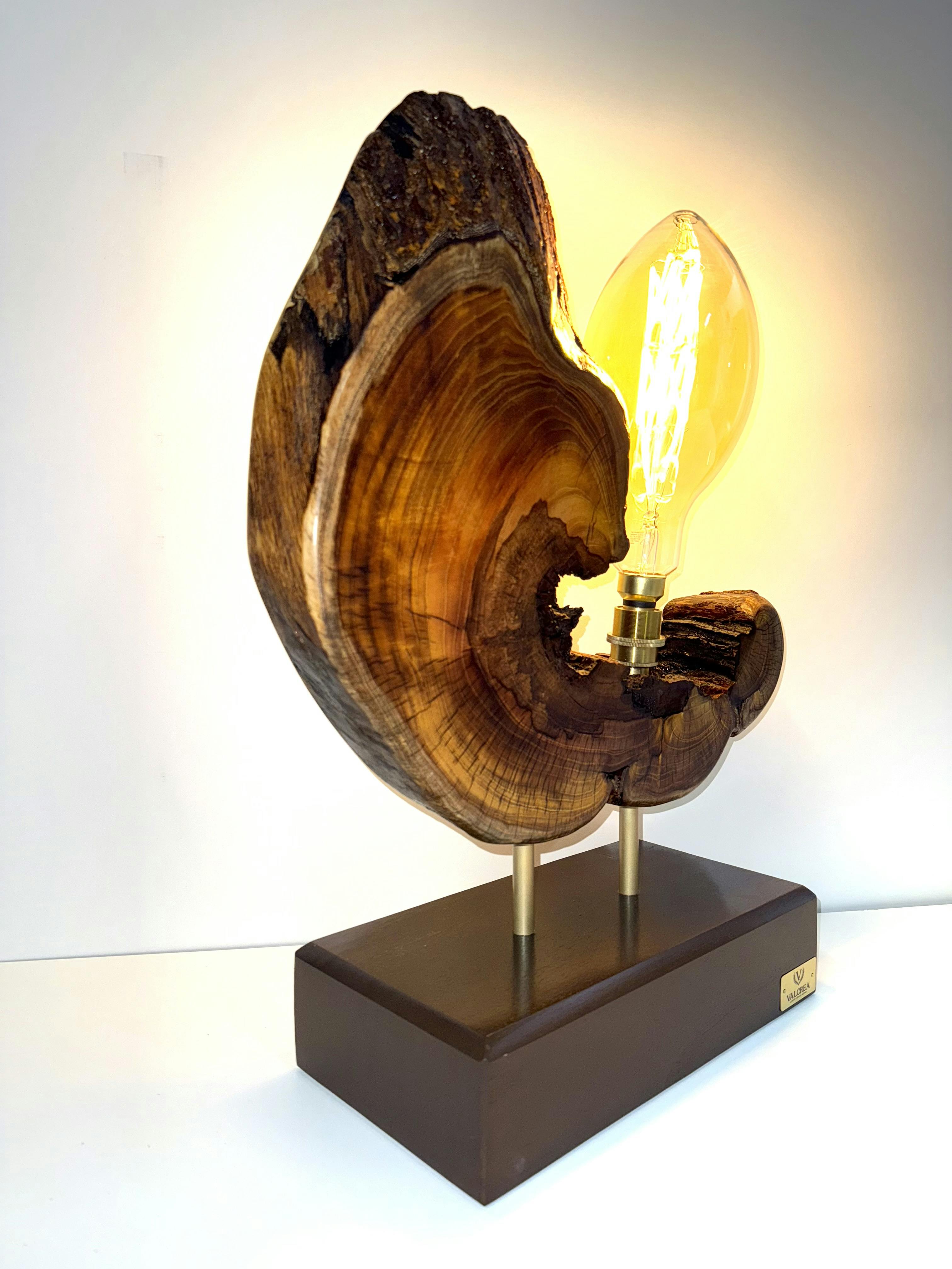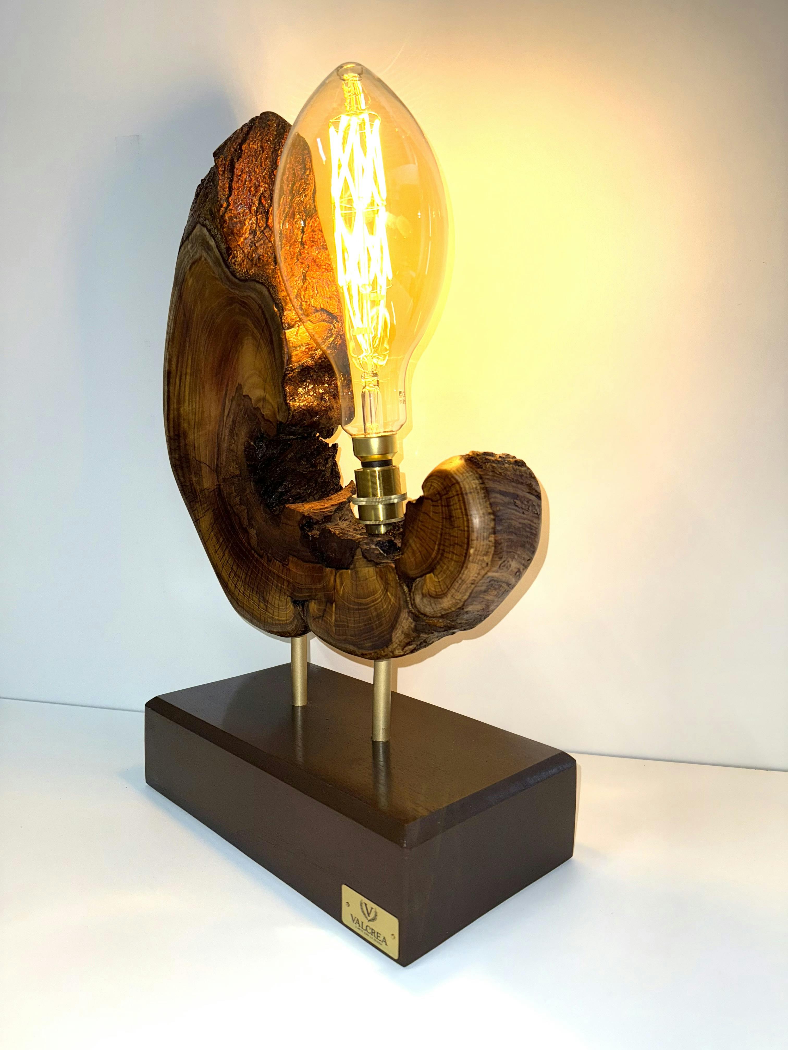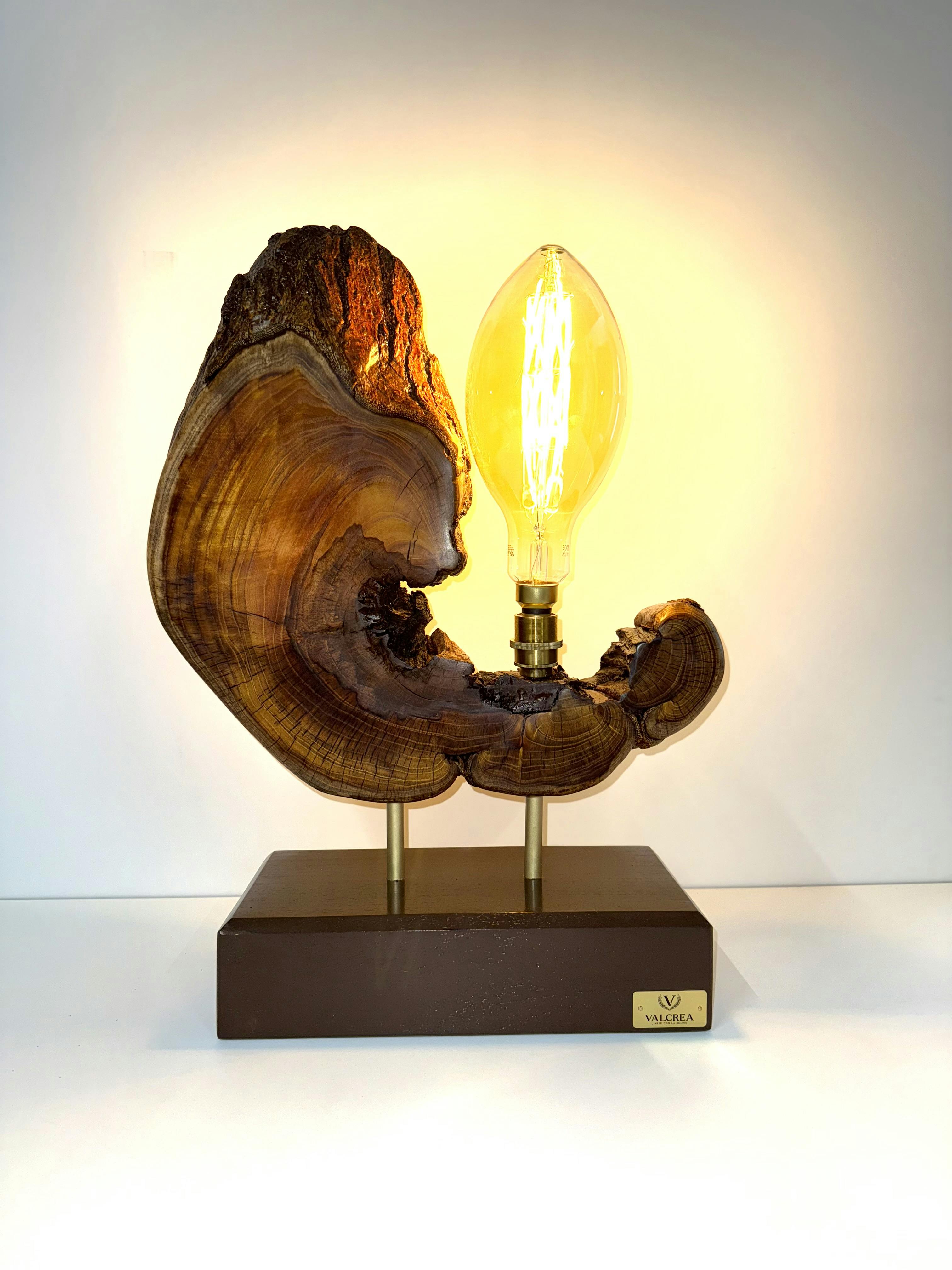 Lampada in radica di gelso con basamento realizzato artigianalmente di colore "noce antico".
