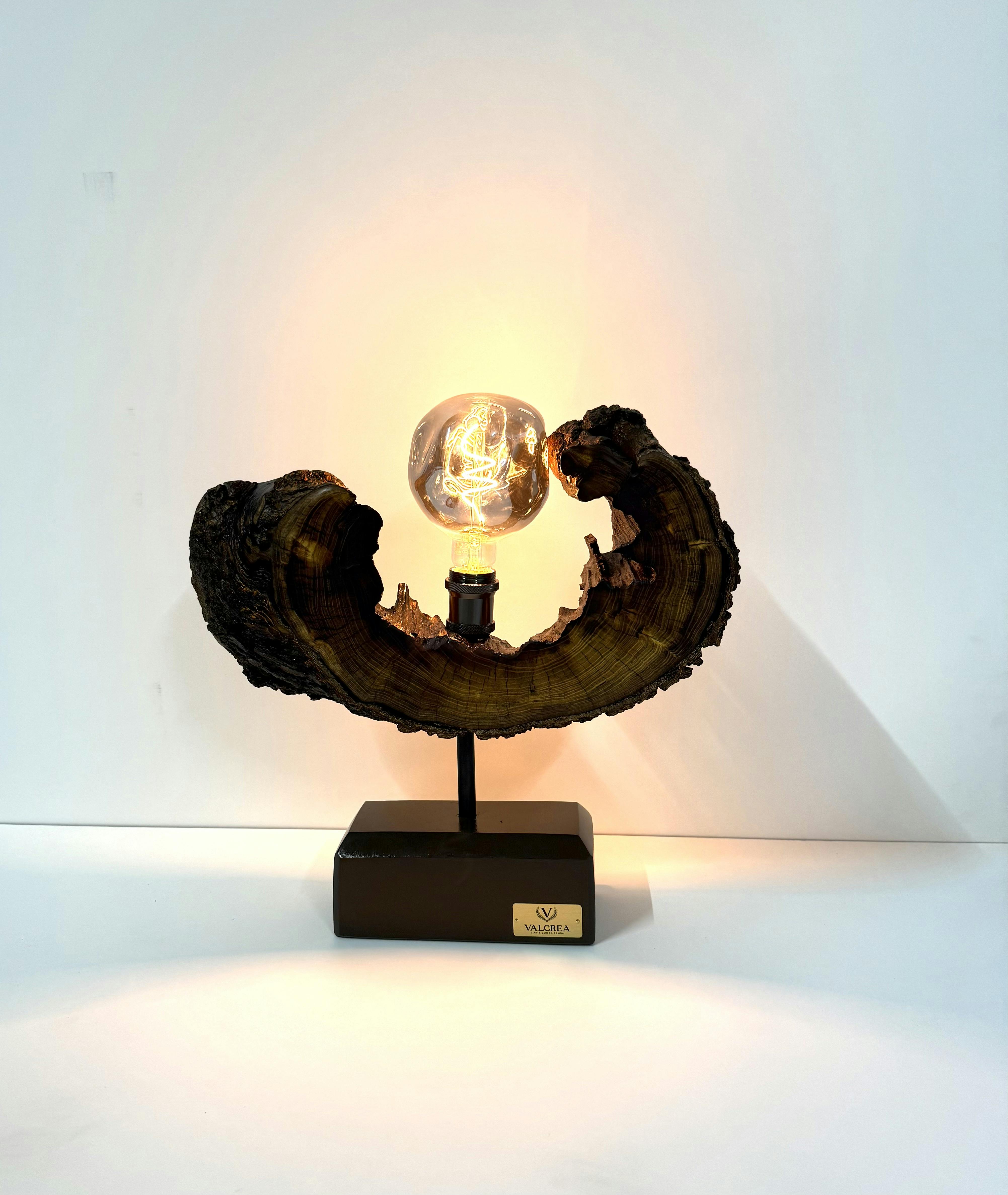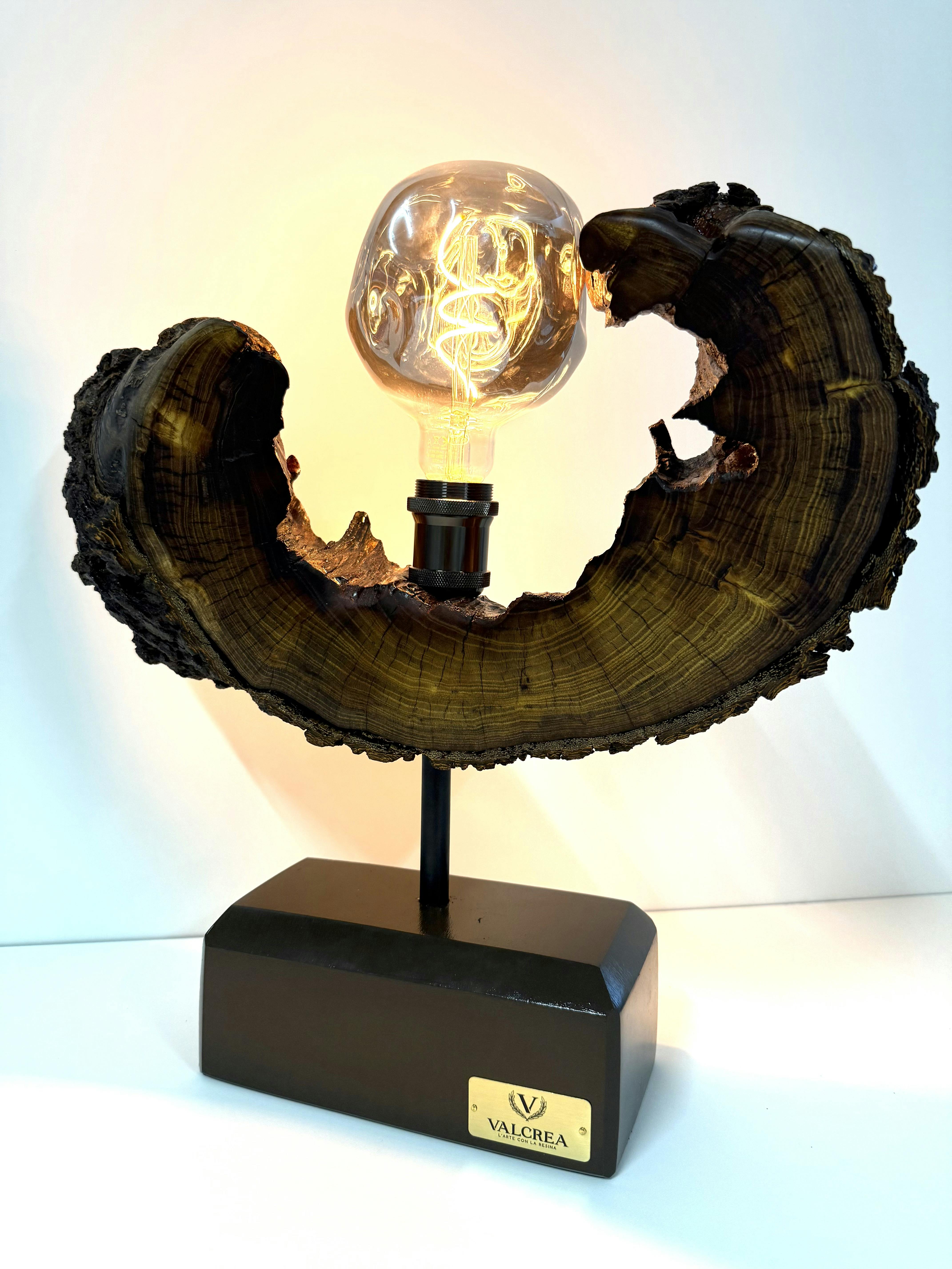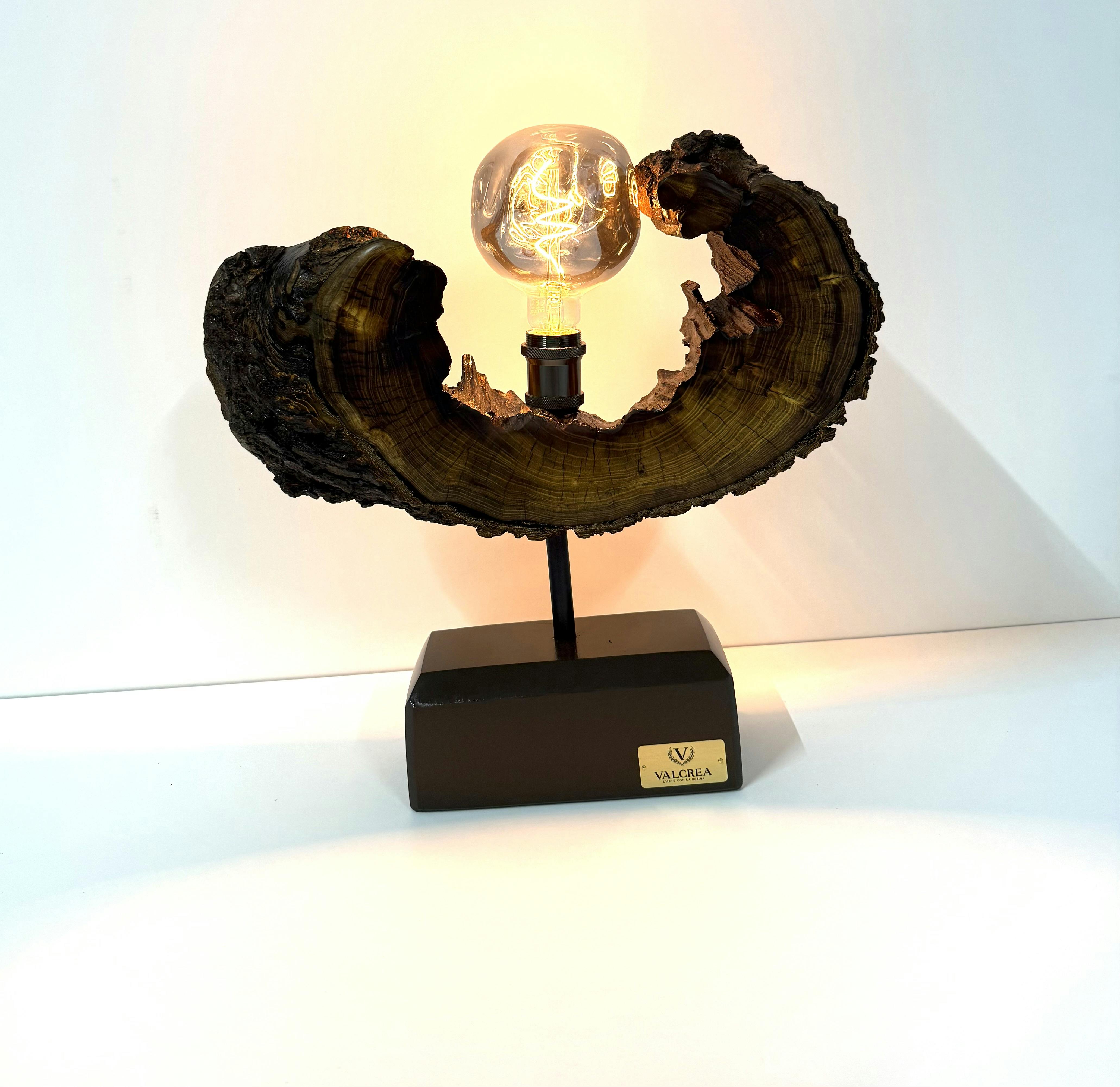 Lampada in radica di gelso con basamento realizzato artigianalmente di colore "noce antico".