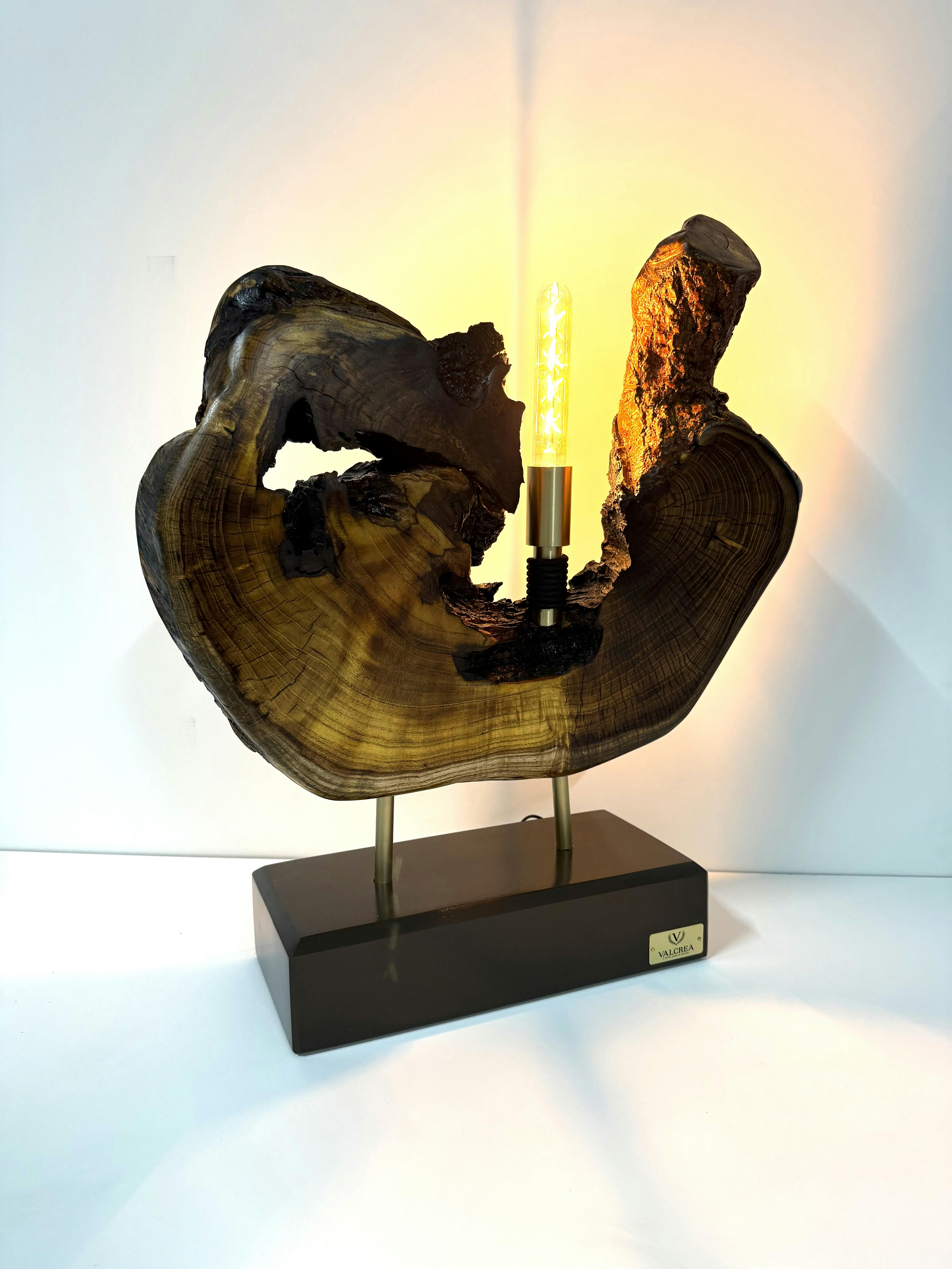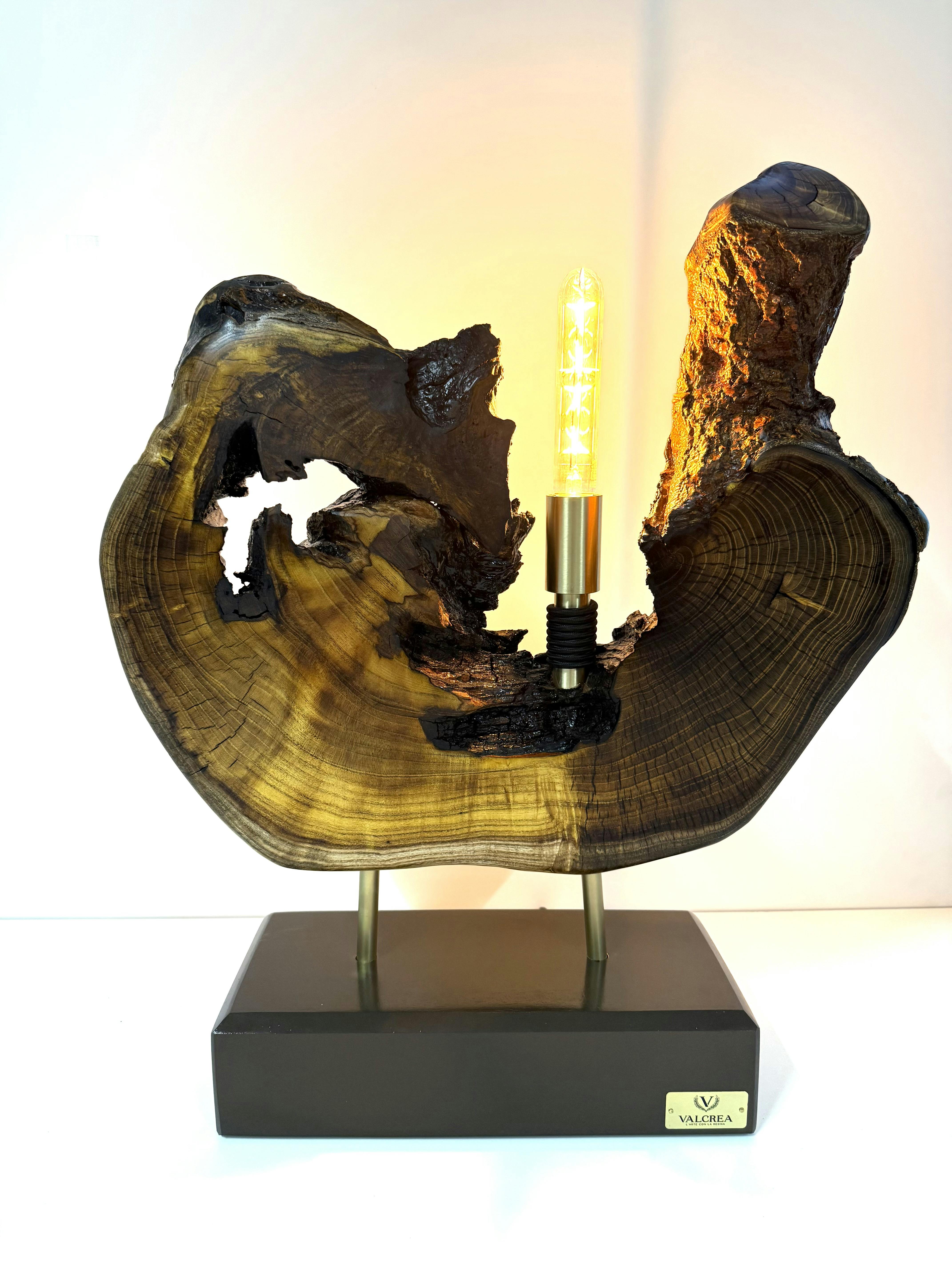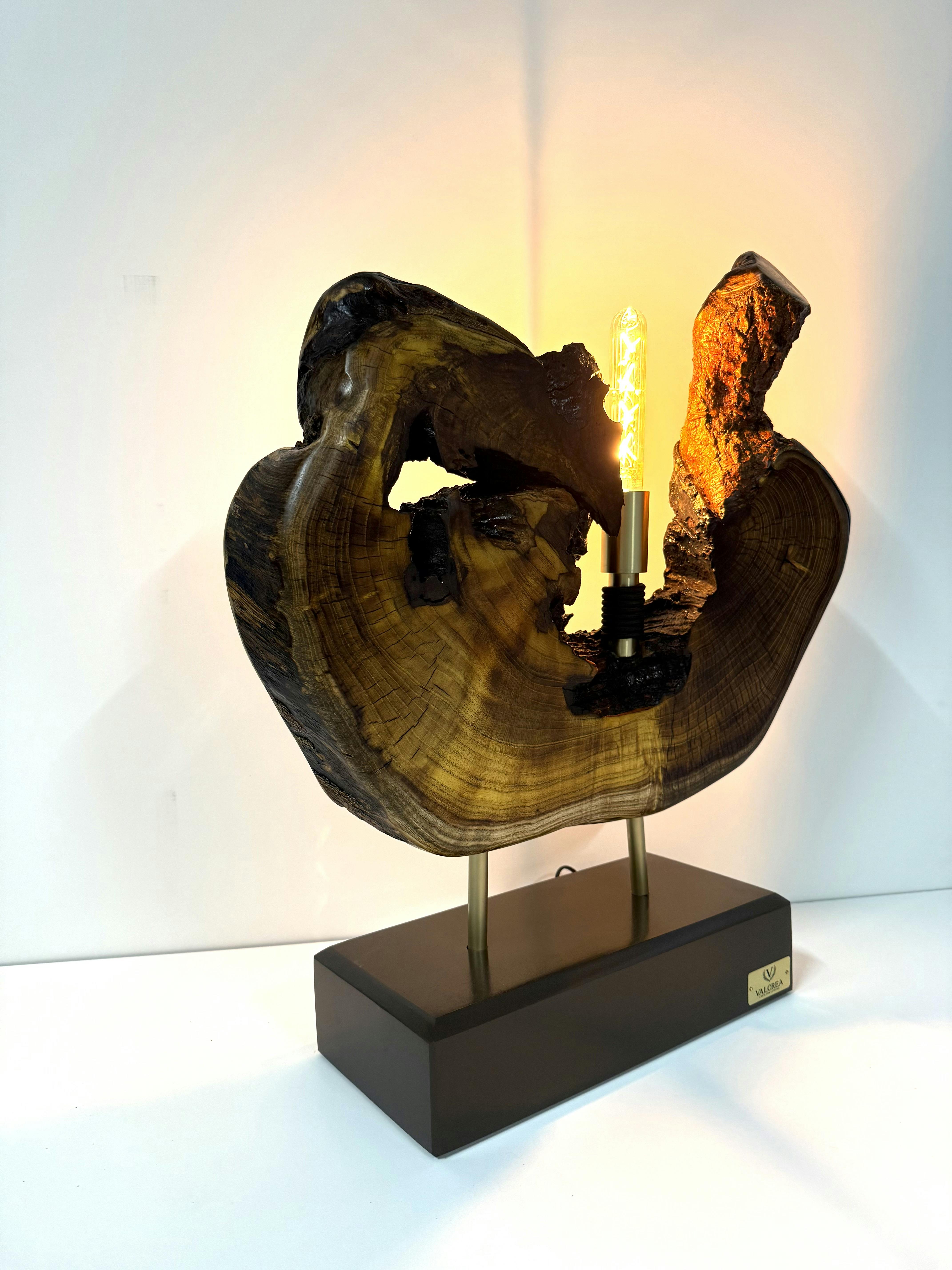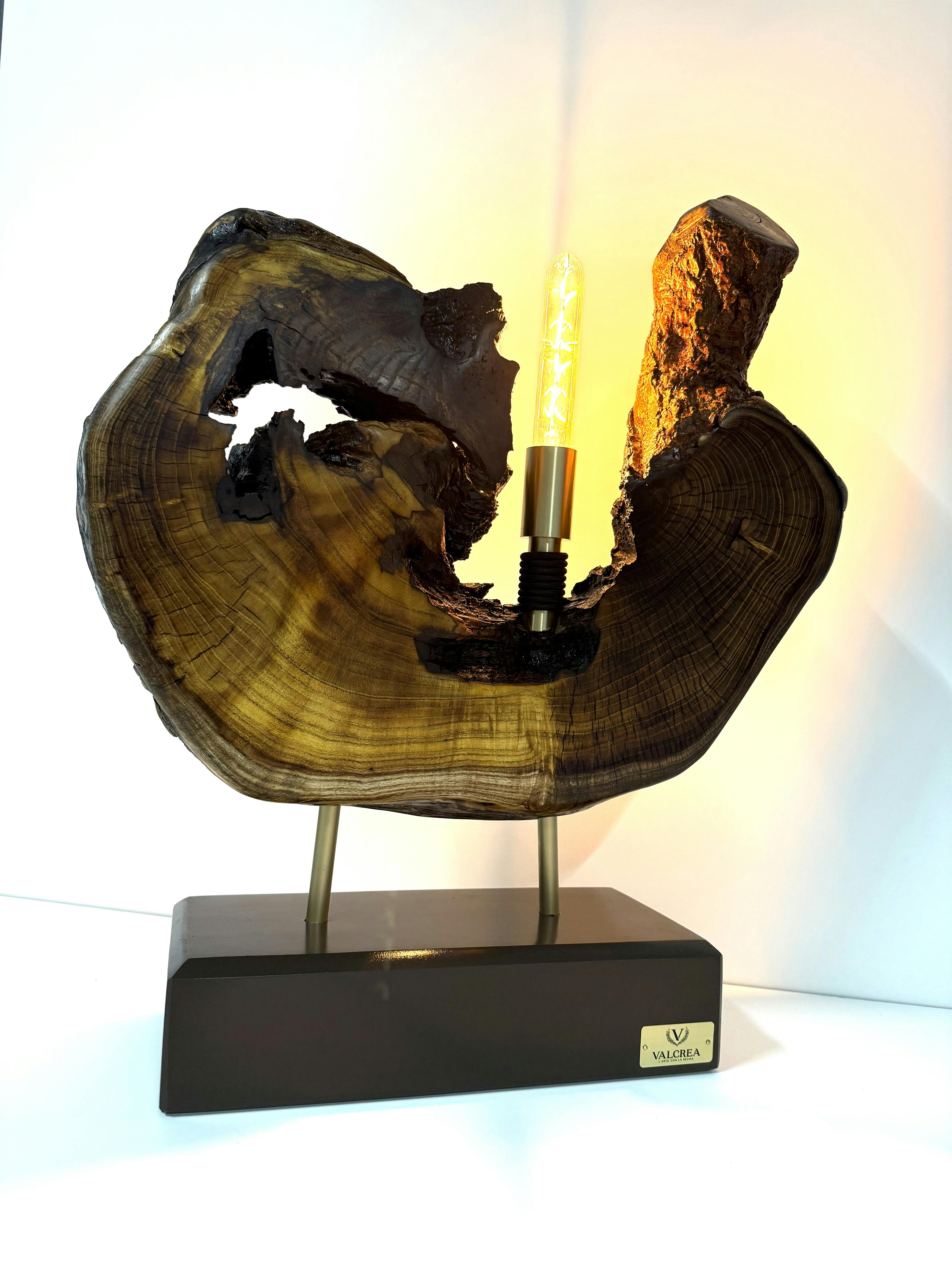 Lampada in radica di gelso con basamento realizzato artigianalmente di colore "noce antico".