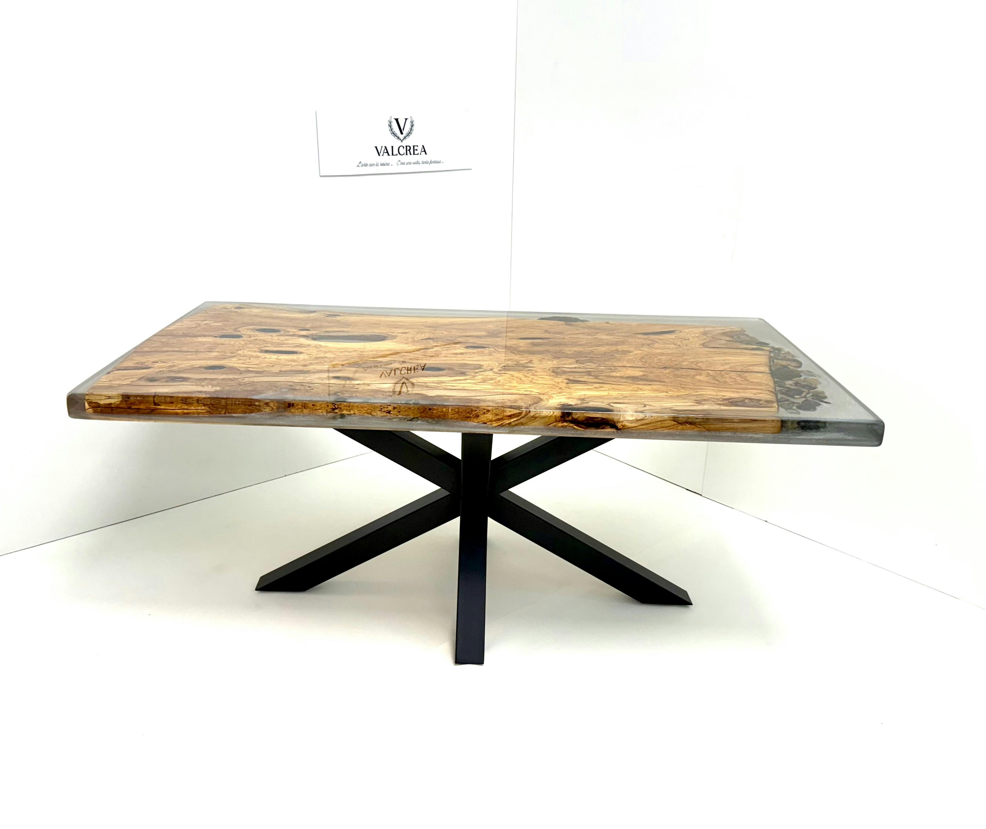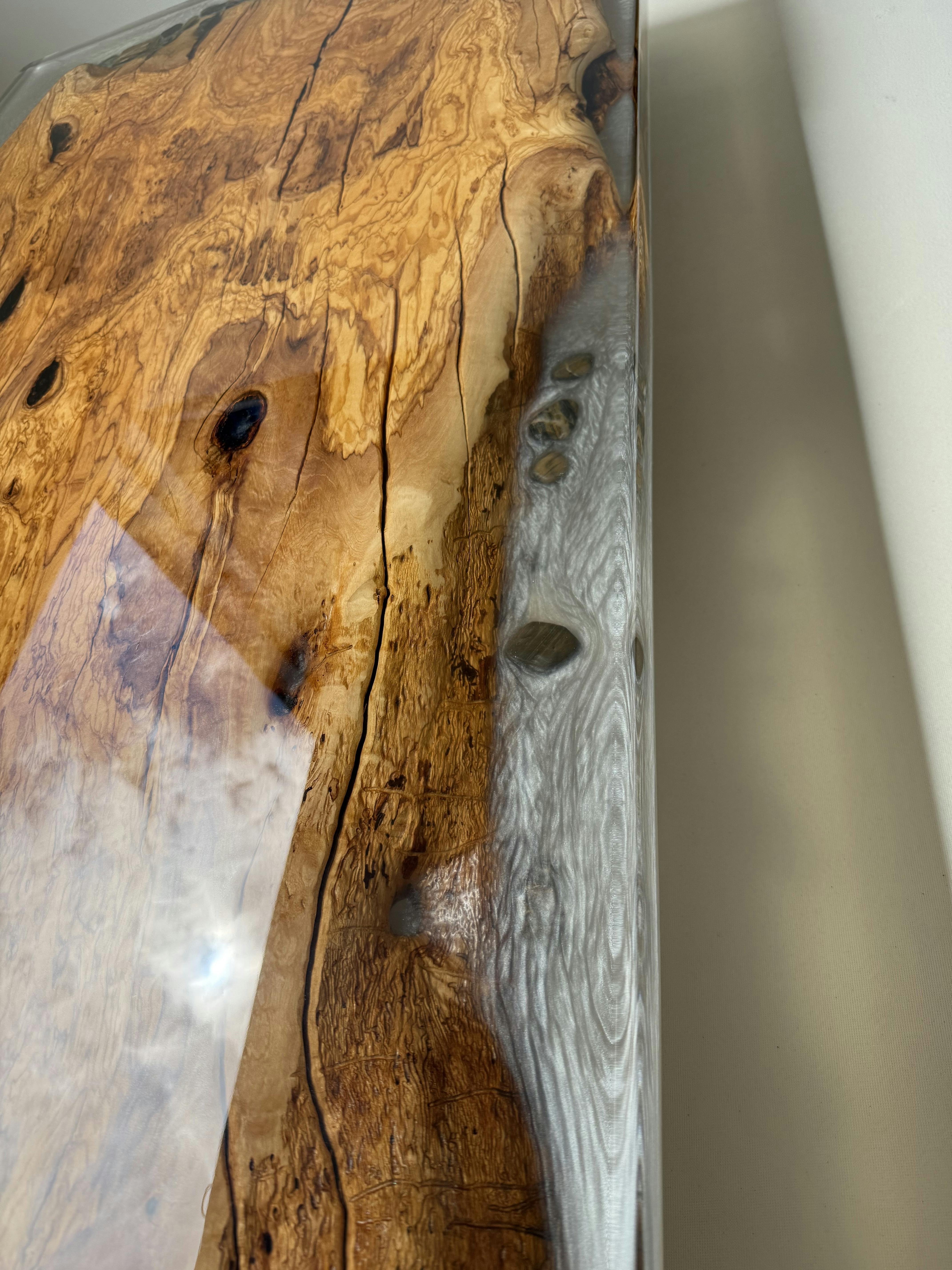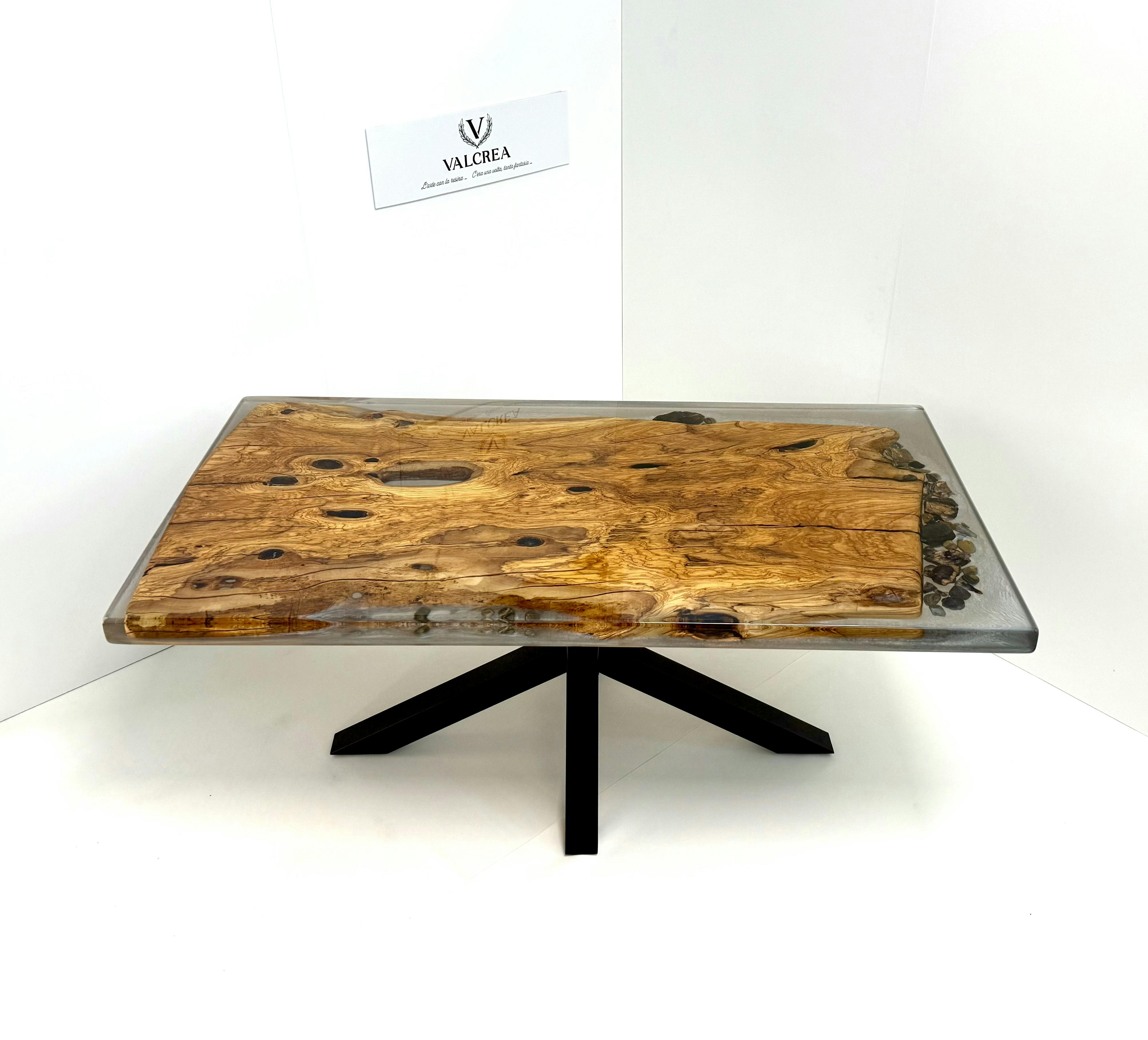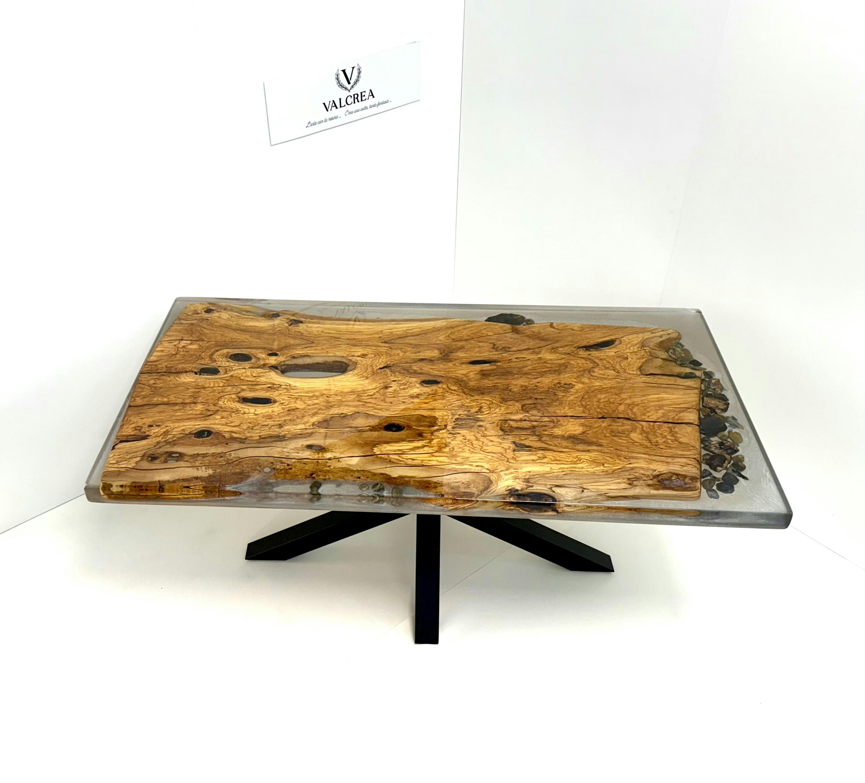 Tavolo con design "effetto fiume" colore grigio pearlascente.