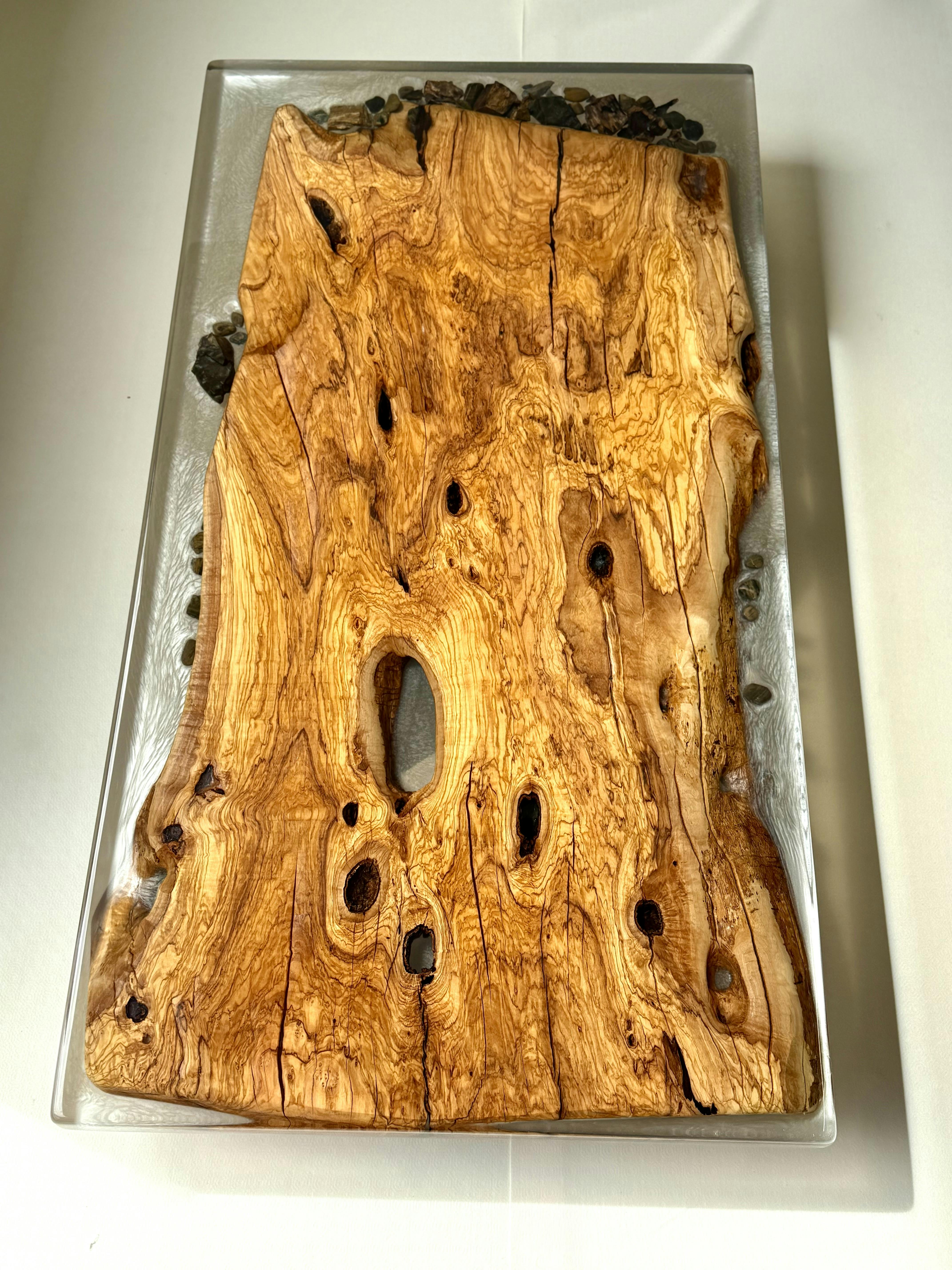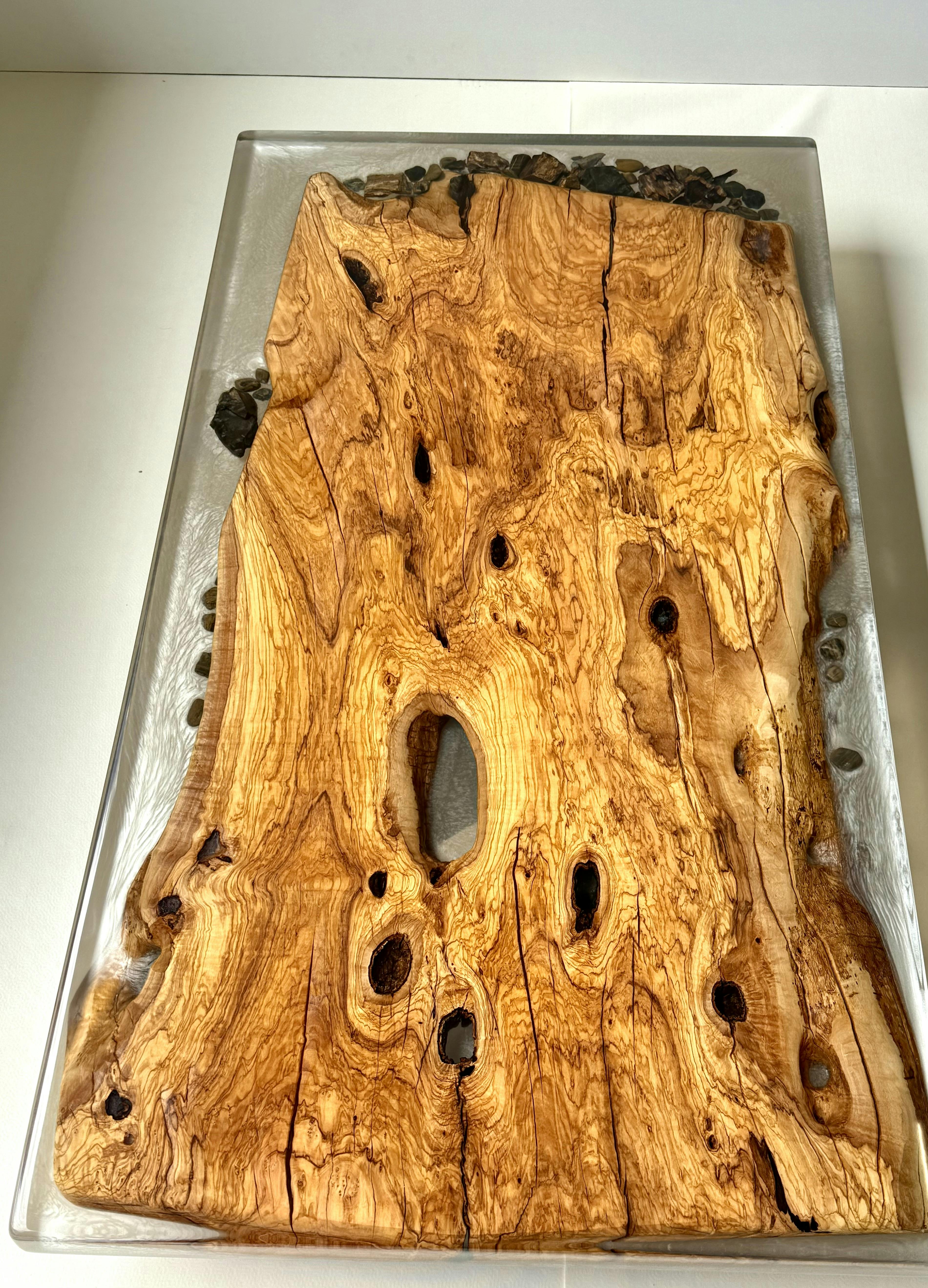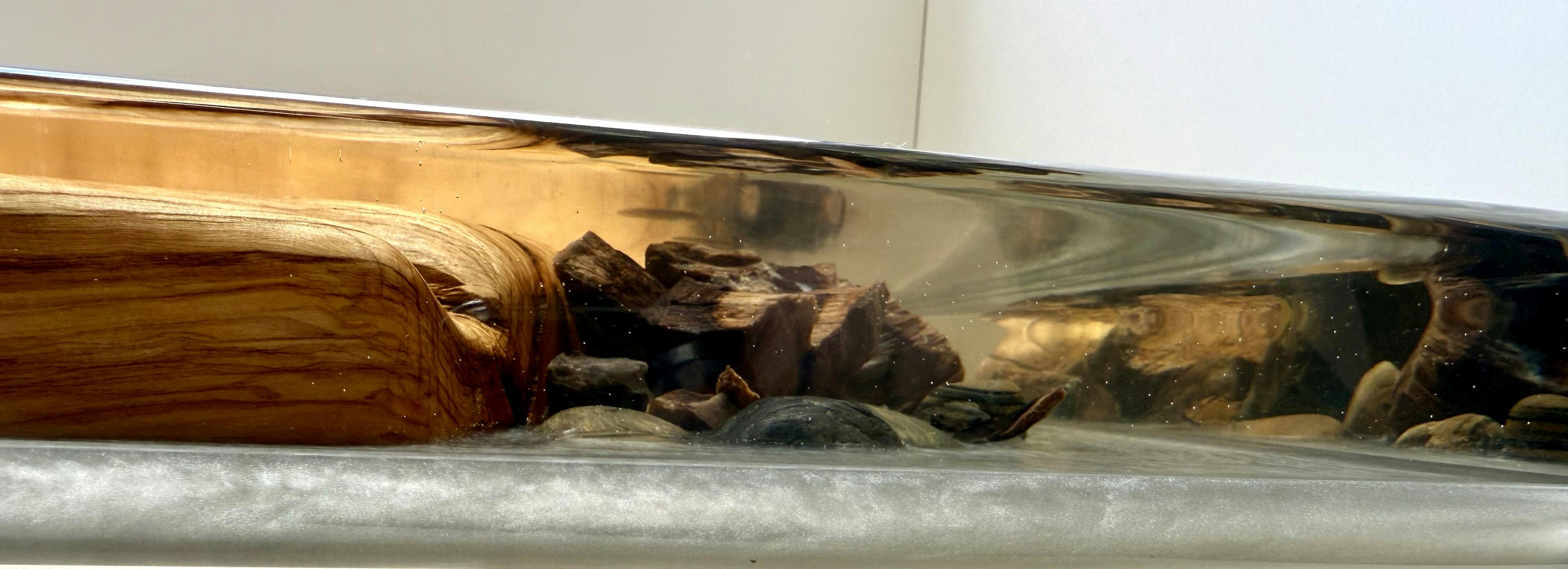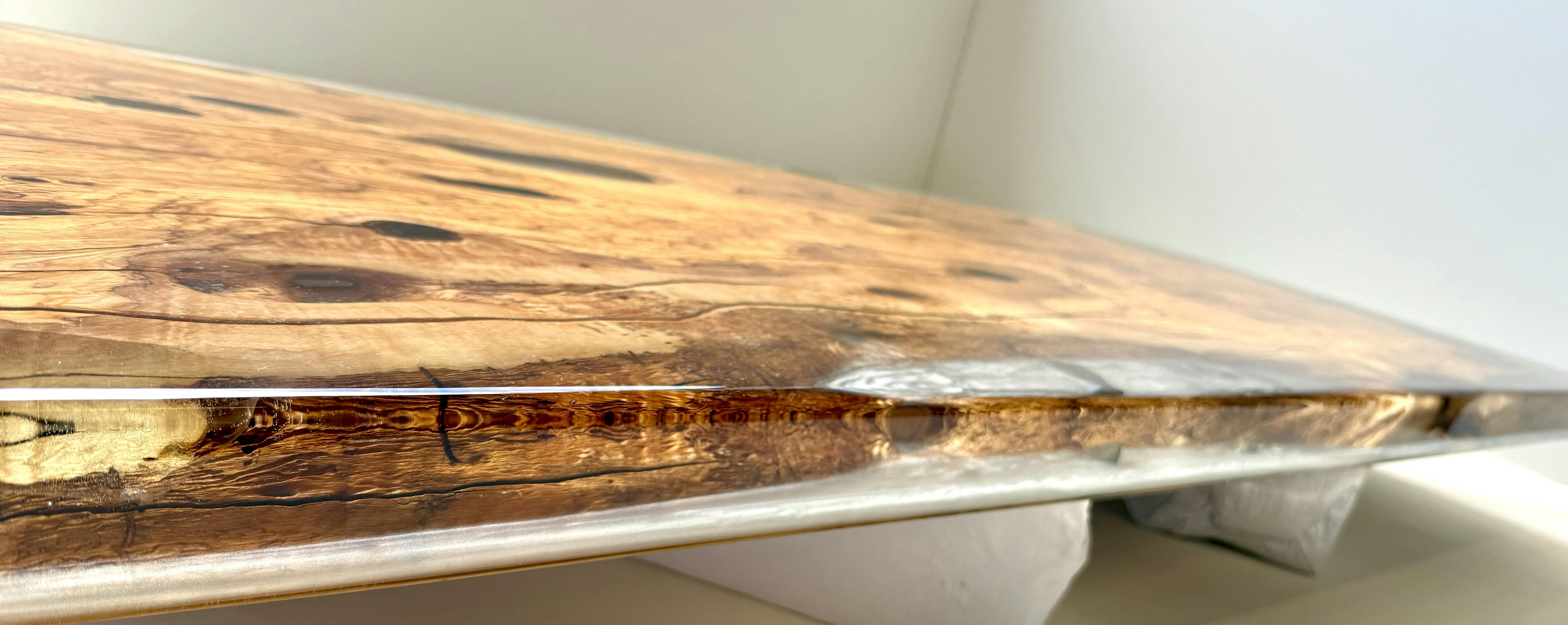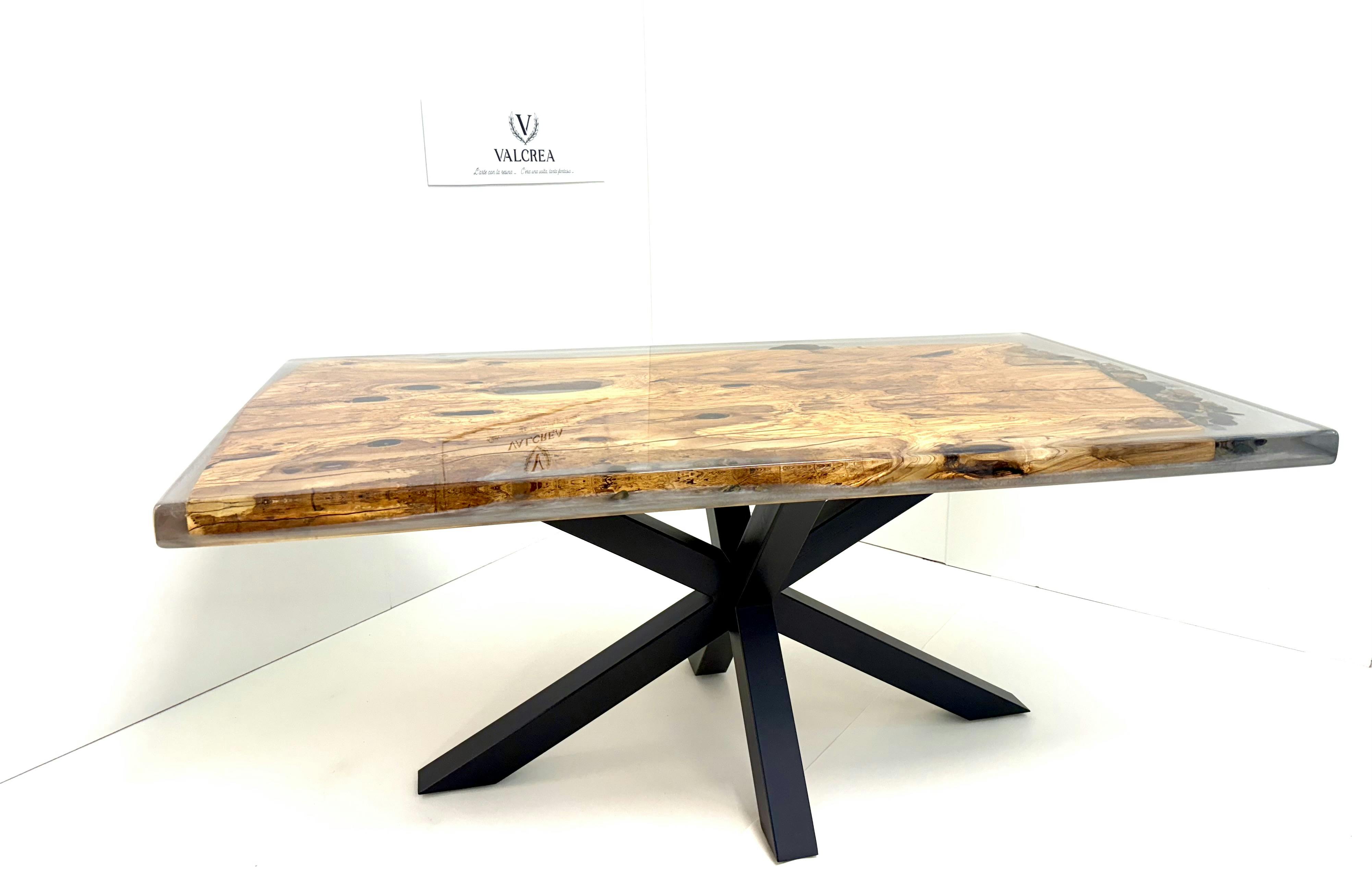 Tavolo con design "effetto fiume" colore grigio pearlascente.